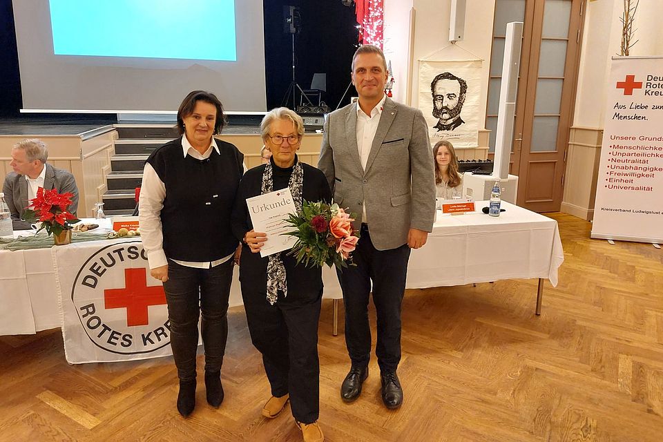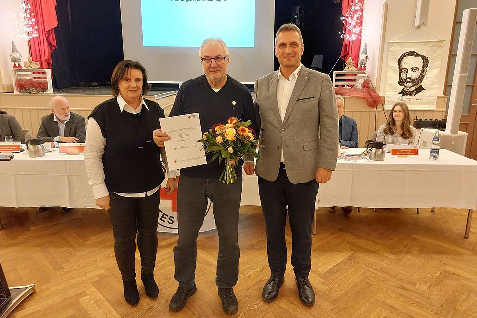 Ein Highlight der Versammlung war die Auszeichnung engagierter Mitglieder. Besonders geehrt wurde Dr. med. Karsten Matheja, der die Verdienstmedaille des DRK-Landesverbandes Mecklenburg-Vorpommern erhielt. Dr. Matheja wirkt seit seiner Jugend im DRK, ist seit 1994 als Kreisverbandsarzt tätig und hat sich durch sein Engagement in der Ausbildung von Rettungsdienstpersonal sowie bei der Zertifizierung des Rettungsdienstes im Altkreis Ludwigslust große Verdienste erworben.