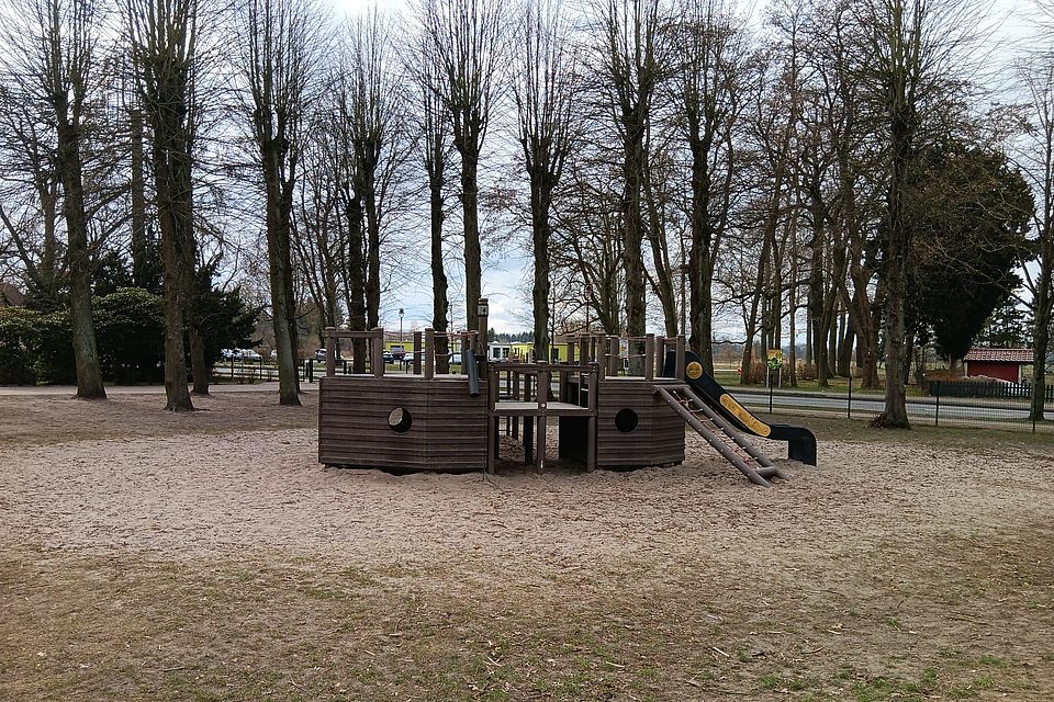 Unsere weitläufige Außenanlage bietet den Kindern abwechslungsreiche Möglichkeiten, ihre motorischen Fähigkeiten weiterzuentwickeln. Ein Kletterschiff mit Hängebrücke, Balancierbalken, eine Hüpfplatte, ein Klettergerüst, ein Rutschturm und eine große Sandkiste laden zu lebendigem Spiel ein. Für Ballspiele steht ein eigener Bereich direkt neben dem Spielgelände zur Verfügung – besonders beliebt bei unseren kleinen Fußballfans.