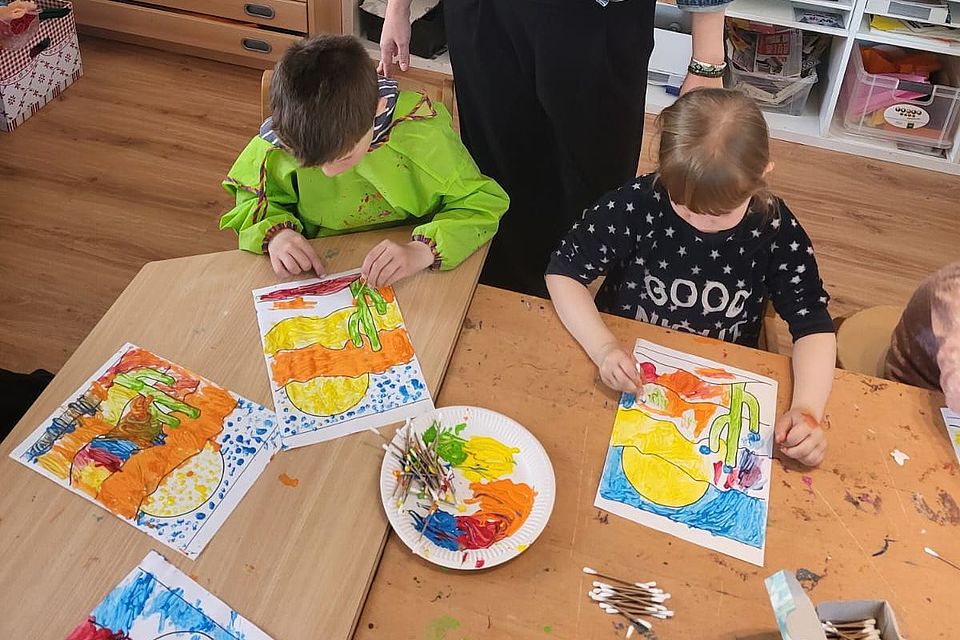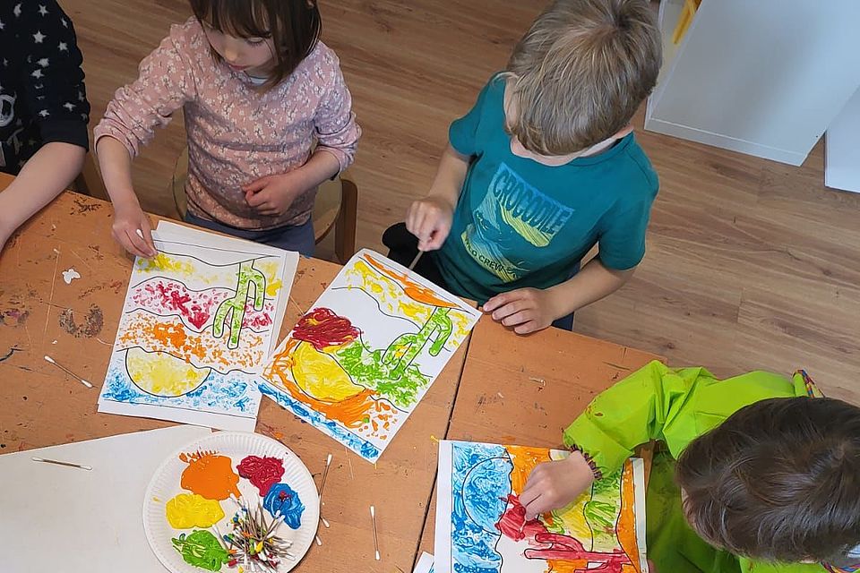 Wir erleben, wie individuell Kreativität sein kann. Jedes Kind findet seinen eigenen Zugang, seinen eigenen Rhythmus, seine eigene Bildsprache. Aus vielen kleinen Schritten entstehen Werke, die Persönlichkeit zeigen und Geschichten erzählen. Genau darin liegt für uns der besondere Zauber dieser kreativen Zeit.
