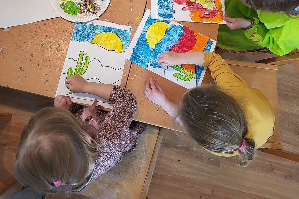 Wir öffnen Räume für Experimente, für Mut und für das spielerische Ausprobieren. Anja Eckstein bringt nicht nur Materialien mit, sondern vor allem Impulse, die unsere Kinder ins Gestalten führen. Naturmaterialien, Kleister, Tusche oder Pinsel – alles wird Werkzeug für eigene Ideen. Dabei zählt nicht das Ergebnis allein, sondern der Weg dorthin: das Tasten, das Staunen, das Verändern.