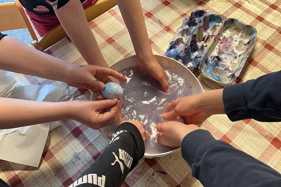 Wir haben gestaltet, verworfen, neu gedacht. Aus Perlen und Draht sind Sonnenfänger entstanden, die jetzt leise den Frühling in unsere Räume holen. Beim Eierfärben ging es weniger um das Ergebnis als um den Weg dorthin – mit Sprühsahne, viel Neugier und dem Mut, Dinge einfach anders zu machen. Genau darin lag der Reiz: im Experiment, im eigenen Ausdruck, im Entdecken der eigenen Möglichkeiten.