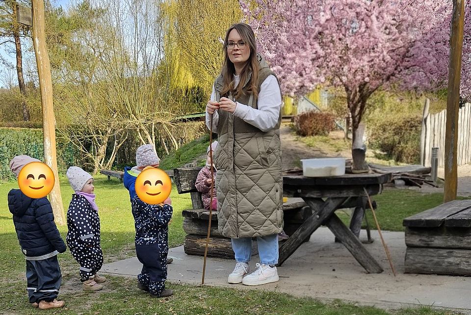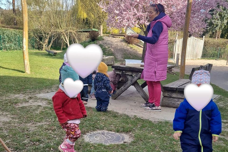 Und dann dieser Moment: Auch die Krippenkinder greifen zu, probieren, genießen – ganz selbstverständlich und mit großer Freude. Stockbrot wird hier nicht nur gegessen, sondern erlebt. Gemeinsam, offen und mit allen Sinnen.