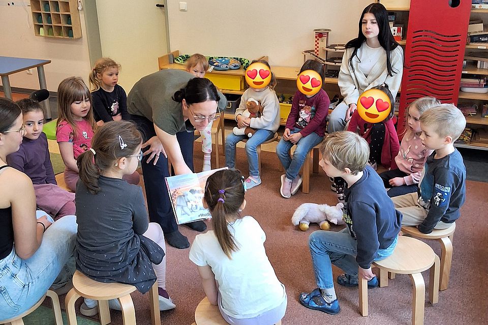 Zum Welttag des Buches durften wir Christin bei uns in der Kita begrüßen, die sich Zeit nahm, um den Kindern vorzulesen. Mit viel Gefühl und lebendiger Stimme ließ sie Geschichten entstehen, die sofort in den Bann zogen. Die Kinder lauschten aufmerksam, stellten Fragen und tauchten gemeinsam in die Welt der Bücher ein – ein Erlebnis, das spürbar nachwirkte.